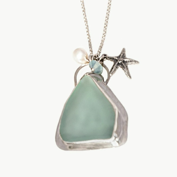 Sea Glass Bezel Set Pendant with Starfish Charm