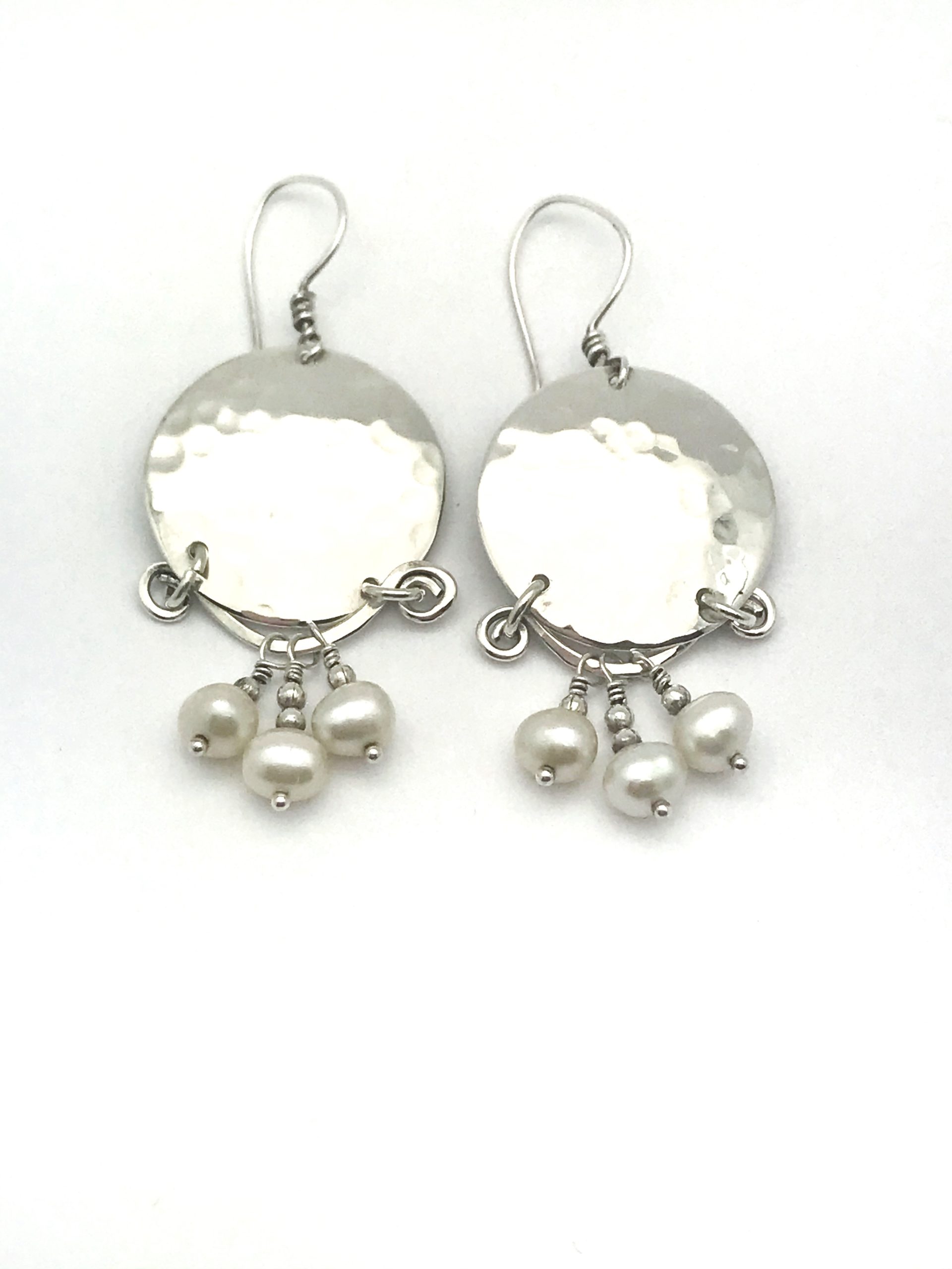 Sterling Silver Disc (5/8″ disc) with Freshwater Pearl Dangles on French ear wires